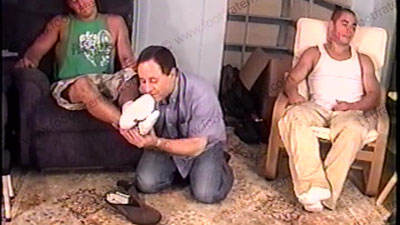 Three hot views of the salesman coming to Graham & Burke with cases of shoes, slippers, sandals, etc. to slip on the straight jock’s feet. For every pair that they decide to take, the guy must kiss their feet for taking them without paying for them. He has to photograph some on the Master’s feet to show the perfect of this straight Jock’s feet in images to hang all over the store. They do some regular talk along with cocky commands from both jocks. It’s unfair that they can take what he want for free and we have to kiss his feet for doing it. They know how to make a foot slave serve their feet & give them over $3000 worth of shoes, sandals and sneakers and treat them superior. It’s all real! The slave has to adore and worship the feet and slip each pair of shoes upon them.