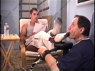 After a hockey game, Burke sets a trap to catch a sissy to be stuck serving his feet! In workout pants, bare chest & sweaty, thread bare white work out short socks, Burke sits back to tease, laugh & control his slave after the sissy gets caught in this Footstool trap & is locked in while forcing him to whiff his socks & laughing at him & teasing his “catch” at his feet which are put up on the padded tray which is level with his slave’s face. His foot sissy as has to smell, kiss, lick and worship Burke's socked feet, then much bare foot licking, kissing & sucking while being trapped in this human foot stool device. While teasing him & making fun of his slave, he makes comments & teases his slave who is trapped at this Macho jock’s feet. His chest, arms & arm pits are hot. He has fun as the slave talks about Graham's feet being better than Burke's feet which drive him up a wall. In this trap, there is no getting away from the teenage hockey jock's feet while he decided he is the best & laughs, teases & enjoys the power. He wiggles his toes and flexes his feet during the whole time, just to tease with his high arched jock feet. Three hot wonderful angles & views of this scene with one close up. He truly owns all foot slaves at his young feet & loves the power. Lots of teasing, laughing & mocking as he torments him with his sweaty feet. Why do young high school jocks love this power so much and take control with their feet so easily? Burke does it again!