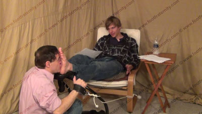 After work, Justin, in jeans, black sneakers & dirty black socks relaxes on the easy chair with his foot slave caught in his sissy trap for the service of his sweaty socks then bare feet. During service, he reads the confession of his foot slave to serve his feet. He controls, dominates, laughs & tells of his thoughts as he teases his foot slave verbally & with his socked, then bare feet. He wipes his feet roughly all over his sissy's face while he is trapped at his feet. He forces sissy to kiss he feet when he looks at himself in a mirror to see how hot he is. Slave is smelling, kissing and sniffing the socked feet, while Justin laughs, teases & dominates with his young hot feet. He relaxes while watching the helpless slave caught at his feet. Straight jocks rule as his sissy serves his sweaty socked feet, then licks, kisses & serves his sweaty bare feet. Toes over the nose, toes licked, kissed, sucked, sweaty feet wiped in the face, etc. He clips his toe nails in the slave mouth as he laughs. Three sensational views of this scene, one full length view, one side view & one from the bottoms showing the full body of Justin as though the camera was your face while he dominates with his feet in your face. Justin does this in a teasing & arrogant, cocky manner and loves this control of having foot slaves at his feet. This teenage jock likes to have a slave worship his feet & uses his power over him in teasing ways. In this trap, there is no getting away from the Master’s feet while he relaxes, controls & enjoys the power. He wiggles his toes and flexes his feet during the whole time, just to tease with his perfectly shaped teenage feet. MUCH TEASING, FOOT WORSHIP & DOMINATION by this really hot guy with awesome feet, body and hair!