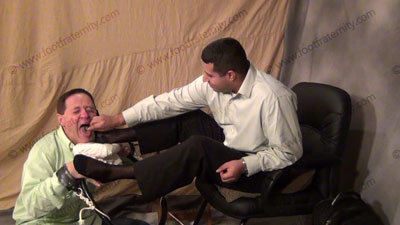 After work, in dress shirts, slacks and sheer black socks slipped out of his straight tip dress shoes, Master Roberto has his slave restrained in the sissy trap & tells his buddy Matt how the sissy serves his socked & bare feet for “real time”. He teases his slaves with his macho Latino feet & honestly wants this worship. Three great views, two full, one from the bottoms of his feet. Verbal teasing & control as he talks about all that he does to his slaves & the power he feels being super straight with male foot slaves to worship & adore his flawless high arched, hot socked feet, & then barefoot worship. Much humiliation, teasing, mocking & more, leaving you hypnotized by the power of his straight, macho, controlling feet & domination. His orders are power and his KNOWS he is superior to all of us & wants us to constantly worship his feet, shoes, socks, etc. He then pulls out his laptop to play video games while his feet are being licked, kissed and cleaned by the slave's tongue while he ignores him & treats him like dirt as the Master relaxes and plays.