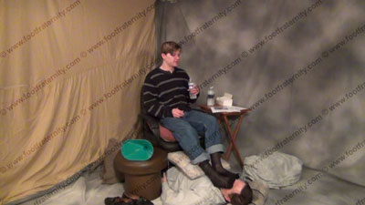 In slacks & dark thick and thin sweaty socks, dirty sneakers & black T-shirt, Justin has his slave on the floor & sits in his easy chair while forcing his sweaty socks in the face & teasing & humiliating his slave. He reads his fan mail from other foot slaves as he does everything - water sports with the bong, spitting loogies in the face and mouth, foot worship and much more. He feet are in his sissy's face while taking over power & laughing at the control. Three great views, two full, one close up. He watches & teases while worship is done to his sweaty socked then bare feet. This hot young teenage Stud makes fun of the fact that he is straight & can do this to his foot slave, making him beg for more. Full teasing attitude, much amusement & teasing & smelling his socked feet, spit, water sports, etc. - ANYTHING he wants! Giving good verbal & loving the power he now has while his feet are being worshipped & serviced. He teases & embarrasses his slave in a powerful manner. Verbal teasing & control & much more. He teases with the water sports bong several times for slave to drink it & be humiliated. Total embarrassment, smelling his feet, licking his feet, kissing feet. Verbal teasing & control & more. Bare foot & socked foot action. Very good teasing domination scene of this really hot young Bieber/DeCaprio type of guy who likes having and owning foot slaves who are serving his need to control, dominate & total foot worship.