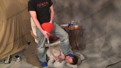 On a lazy Saturday, young Justin, in well worn jeans & a T-shirt then hoodie, has his slave on the floor, under his feet while he sits in an easy chair for the service of his sneakers, sweaty blue Under Armor socked feet, then bare feet, as he continues his interviewed for a TV show about "Making your Boss into your Slave". During this he tells of his thoughts of having foot slaves as he teases verbally & with his socked, then bare feet. Slave starts smelling, kissing and sniffing the socked feet, while Justin arrogantly takes the worship with a cocky, young attitude and talks to the camera. Straight guys rule as his sissy serves his sweaty socked feet, then licks, kisses & serves his sweaty bare feet. Toes over the nose, toes licked, kissed, sweaty feet wiped in the face, as he gives commands, teases & loves the power & adoration. He uses the water sports bong, forcing the sissy to drink every drop while at the same time he uses his foot to hold the slave's face in place for it. While looking at hot magazines, he uses slave's face & head as a foot stool with slave in several different positions beneath these young hot feet. Three great views, one full, one close up and one full from another angle while he dominates with his feet. Justin does this in a teasing & arrogant, cocky manner and loves this control of having foot slaves at his feet. He wiggles his toes and flexes his feet during the whole time, just to tease with his perfect feet. He is growing into this adoration of his sexy youth & power with ease & having a great time doing everything you can imagine!