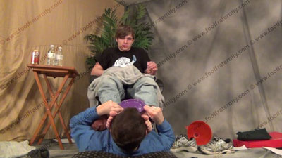 In jeans, sneakers, hoodie, sweaty grey socks, & bare foot licking & worship; much bare foot flexing & wiping in the face; Justin sitting on an easy chair with slave beneath his feet ready to be totally embarrassed & humiliated in many ways; slave becomes Justin's foot rest; sock and bare foot worship; spit; teases; mocks; he "rubs one out" and forces his slave to lick it up; does water sports in the bong forcing him to drink every drop; gives orders & talks about the power; then takes slave's money & gifts for allowing him to serve his feet; three camera views (one close up) & two other very sensual angles.