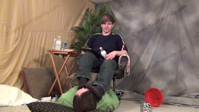 n jeans, sneakers, sweaty black socks, Justin forcing his sissy to serve his socked & bare feet; He has beneath his feet while he tells the straight guys the reality of needing to worship their feet; Justin totally embarrasses & humiliates in many ways; slave becomes Justin's bitch; sock and bare foot worship; spit; teases; mocks; gives orders & talks about the power; he uses the bong to force sissys to drink his w/s; bare foot licking & worship; foot flexing & wiping in the face; Justin sitting on an easy chair with his slave beneath his feet ready to be totally embarrassed & humiliated in many ways; foot stool; gift of new shoes; three camera views (one close up) & two other very sensual angles.