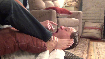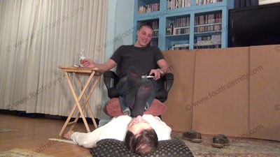 In jeans, T shirt, boat shoes, sweaty black socks, this hot straight athletic jock, Ridge is sitting in a chair with his bitch beneath his feet to worship & sniff the sweaty socks, then the dirty bare feet; Ridge laughs, talking to his buddy who saw the first film knowing that Straight Guys Rule; & humiliates slave at his feet ready to be totally embarrassed while he tells his buddy of how much sissys need to be at his feet. Sock and bare foot worship; teases; mocks; gives orders; foot rest; humiliates him by allowing him to serve his feet; Ridge is cocky, arrogant and looks just like Apollo's brother!; He laughs about having a foot slave because he is straight; three camera views (one close up) & two other very sensual angles. Ashes in slave's mouth; Socks sniffed, kissed; bare feet licked, toes sucked - while he humiliates & dominates!