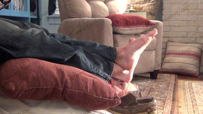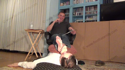 In jeans, T shirt, boat shoes, sweaty black socks, this hot straight athletic jock, Ridge is sitting in a chair with his bitch beneath his feet to worship & sniff the sweaty socks, then the dirty bare feet; Ridge laughs, describing how Straight Guys Rule; humiliates slave at his feet ready to be totally embarrassed while he tells his bitch how he will force him to worship his feet from this day forward. He quit his other job so he could have foot sissys pay to serve his feet all the time; Sock and bare foot worship; teases; mocks; gives orders; foot rest; humiliates him by allowing him to serve his feet; Ridge is cocky, arrogant and looks just like Apollo's brother!; He laughs about having a foot slave because he is straight; three camera views (one close up) & two other very sensual angles. He is amused at this power; Socks sniffed, kissed; bare feet licked, toes sucked - while he humiliates & dominates!