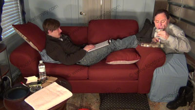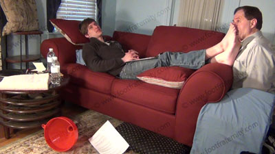 JUSTIN ON THE SOFA WITH FAG KNEELING AT HIS FEET & W/S ICE CUBES