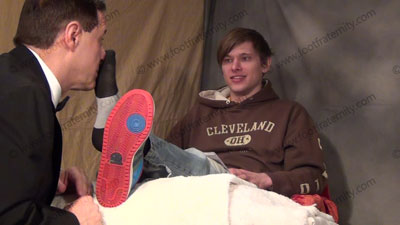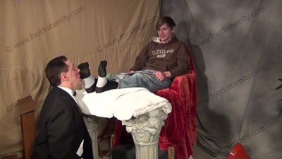 In jeans, hoodie, black & white Under Armor sports socks, Justin has slave in tuxedo "marry" his feet with vows & gifts! Sweaty sock worship & bare foot licking & action; much foot flexing & wiping in the face; Justin sitting on an easy chair with his feet up on a pedestal while slave kneeling to his feet in many positions ready to be totally embarrassed & humiliated in many ways; slave weds Justin's feet as he teases; mocks; gives orders & talks about the power; three hot camera views (one close up) & the others very sensual angles especially of the bottoms of his young feet. He teases, mocks & takes foot control over his bitch. HOT!