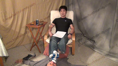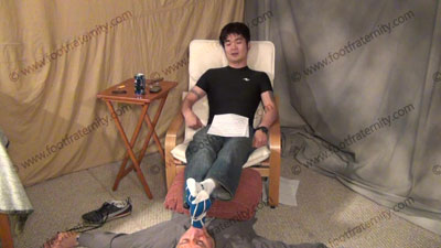 In jeans, tight black T-shirt & white/blue Puma socks & Puma sneakers, this hot guy, ChinHo is sitting above his slave in his easy chair with slave on the floor beneath his feet while worshiping & sniffing the sweaty socks, then the sweaty perfectly shaped bare feet as ChinHo responds teases with verbal talk and foot teasing; ChinHo laughs, knowing that Straight Guys control & humiliate sissies ready to be totally embarrassed to worship the feet of his Master; Sock and bare foot worship; teases; mocks; gives orders; then humiliates him by allowing him to serve his feet as he shoves them in the slave's then uses him as a foot stool; ChinHo is smart, arrogant and teases; three camera views (one close up) & two other very sensual angles. Socks sniffed, kissed; bare feet worship - His ego is growing!