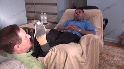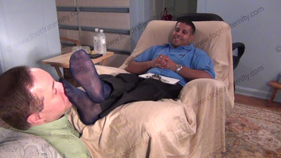 In slacks, black tassel loafers, blue sheer to toe dress socks for worship; Roberto sitting in lounger as he tells his 18 year old son that this foot sissys will now be the son's slaves as well! Roberto teaches his son how to have foot worship; teases; mocks; gives orders; and commands the bitch to serve him, and his son now; he humiliates the sissy as he shows his son how to dominate and humiliate a foot sissy; he totally believes that foot slaves are here to serve him and his son; he teaches how to blackmail, humiliate & much more; Roberto is extremely arrogant, cocky & a real prick in how he treats his foot sissys; three camera views (one close up) & two other very sensual angles. Only sheer sock action in this one, but you can see his sexy bare feet thru the sweaty socks! Very hot!