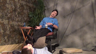 Dress shirt, dress slacks, loafers, & thick & thin dress socks, this hot Korean guy, spiked styled hair, ChinHo is sitting on easy chair with slave now on the floor beneath his feet while worship & sniffing the sweaty socks, then the sweaty perfectly shaped bare feet; ChinHo continues his interview with Dr. Phil about taking over his boss and making him into a foot slave because he is Straight; responding to comments about the control & humiliation of his foot slave who is totally embarrassed when he has to worship the feet of this Master; Sock and bare foot worship; teases; mocks; gives orders; and humiliates him; ChinHo is smart, arrogant and teases during the entire interview where he is looking directly into the TV camera; three camera views (one close up) & two other very sensual angles. Socks sniffed, kissed; bare feet licked, toes sucked - ChinHo tells the TV audience about the power he has with his feet and will continue for a long time!