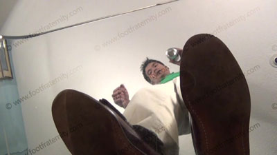 In Bass Weejun penny loafers, you are beneath his shoes as though you have been shrunk and are stepped on beneath his feet; his dirty sheer dress socked feet, then his bare feet. He is wearing preppy clothes as he looks down at you beneath his feet and walks all over YOU! He is very verbal while looking down at you. This is a new film genre for the Fraternity to show Giants with you beneath his feet, ass and more. Three camera views - two close ups from both directions and one full view of him showing as though someone were watching him do it to you. Very erotic and something VERY different for those into this scene.