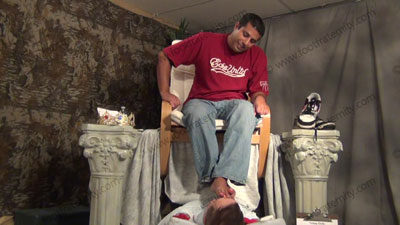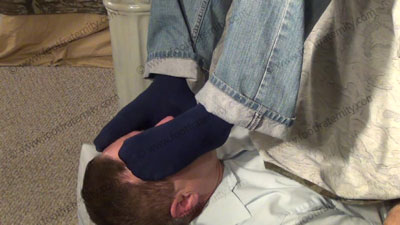 In jeans, bare feet to start, this hot straight stud is sitting above his bitch for worship of his macho bare sweat feet then sniffing the Under Armor navy blue sweaty socks; Roberto laughs, knowing that he rules & humiliates slave at his feet ready to be totally embarrassed when the slave is serving his bare feet & socked foot worship as he teases; mocks; gives orders; answers your questions; then humiliates him by allowing him to serve his feet; Roberto is cocky, arrogant and teases about knowing the sissy's need to be at his feet as he talks about his power & control & having sissys kiss his feet because of this; three camera views (two different hot angle full views) & one close up. Socks sniffed, kissed; bare feet licked, spit loogies; toes sucked as he is cocky, arrogant and demands the worship. Total humiliation. He DEMANDS this power & control for being straight.