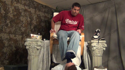 In jeans, this hot straight stud is sitting above his bitch for worship of his Under Armor navy blue sweaty socked feet to start, macho bare sweat feet service; Slave has to file the dead skin off his feet and eat it. Foot care to this straight Stud's bare feet; Roberto laughs, knowing that he rules & humiliates slave at his feet ready to be totally embarrassed when the slave is serving his bare feet & more socked foot worship as he teases; mocks; gives orders; answers your questions; then humiliates him by allowing him to serve his feet; Roberto is cocky, arrogant and teases about knowing the sissy's need to be at his feet as he talks about his power & control & having sissys kiss his feet because of this; three camera views (two different hot angle full views) & one close up. Socks sniffed, kissed; bare feet licked; toes sucked as he is cocky, arrogant and controls the worship. Total humiliation. He DEMANDS this power & adoration for being straight.