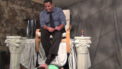In dress shirt, tie, brogues & thin nylon back part sheer dress socks, this hot straight stud is sitting above his bitch for worship & sniffing the sweaty socks, (no bare feet); Roberto laughs, knowing that he rules & humiliates slave at his feet ready to be totally embarrassed when the slave is serving his feet: socked foot worship; teases; mocks; gives orders; then humiliates him by allowing him to serve his feet; Sissy does a song to his feet; Roberto is cocky, arrogant and teases about knowing the sissy's need to be at his feet as he talks about his heterosexuality & having sissys kiss his feet because of this; three camera views (two different hot angle full views) & one close up. Socks sniffed, kissed; licked, sucked as he is cocky, arrogant and demands the worship. He LOVES this power & control & is so friggin' HOT because he loves it for real!