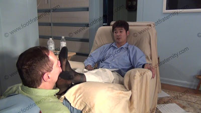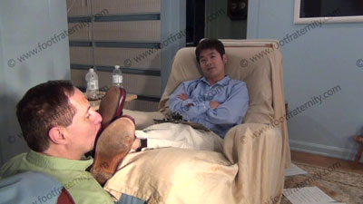 In slacks, nice shirt, sheer nylon cap toe socks, & Bass tassel loafers, this hot straight stud is relaxing on an easy chair with slave at his feet while Chin Ho teases & humiliates him into full submission. Sissy serves at his feet to worship & sniff the sweaty socks, then pulls socks off to slip his Bass loafers on his bare feet for much worship of the Bass Weejuns on bare feet of this Preppy stud; Chin Ho is amused, knowing that he rules & humiliates slave at his feet ready to be totally embarrassed when the slave is under the spell of his shoes & socked feet; teases; mocks; gives orders; then humiliates him by allowing him to serve his shoes & socked feet; Chin Ho is cocky, arrogant and knows & uses the sissy's need to be at his feet; three camera views (one close up) & two hot full length angles. Socks sniffed, kissed; shoes worshipped because he is cocky, arrogant and command the worship from his bitch slave. MUCH Shoe worship.