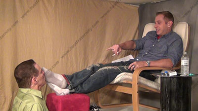 In jeans & sneakers, sweaty white gym socks as this hot straight blonde hair & blue eyed guy is sitting above his kneeling bitch for worship & sniffing the sweaty socks, His slave is totally embarrassed when while kneeling at and smelling & serving his hot sweaty socked feet then sweaty bare feet; Riley teases; mocks; gives orders; then humiliates him by telling of that because he is straight and Republican, slave slaves gave to serve his feet; Riley is cocky, demanding and teases as he talks about his straight life & having sissys worship, smell & kiss his feet because of this; he tells all while his stud feet are worshipped; he gives orders and commands; three camera views (two different hot angle full views) & one close up. Socks sniffed, kissed; socked sniffed & kisses as he "parties and demands the worship. He really does love this worship and control for real as his bitch sissy must obey his every word! Awesome and HOT!