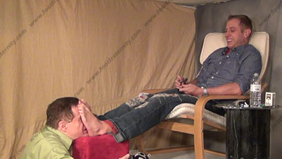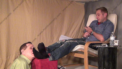 In jeans & sneakers, sweaty black socks as this hot straight blonde hair & blue eyed guy is sitting above his kneeling bitch for worship & sniffing the sweaty socks then his perfect shaped bare feet; His slave is totally embarrassed when while kneeling at and smelling & serving his hot sweaty socked feet then sweaty bare feet; Riley teases; mocks; gives orders; then humiliates him by playing the straight and Republican card which he dominates over liberal slave slaves who must serve his feet; Riley is cocky, demanding and teases as he talks about his straight life & having sissys worship, smell & kiss his feet because of this; he tells all while his stud feet are worshipped; he gives orders and commands; three camera views (two different hot full view angles) & one close up. Socks sniffed, kissed; socked sniffed & kisses as he "parties and humiliates while teasing. He gets "high" & blows smoke in sissy's face. He really does love this worship and control for real as his bitch sissy must obey his every word! Licking toe jam and bare feet; spitting; begging him for more!