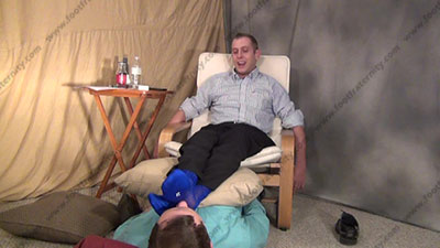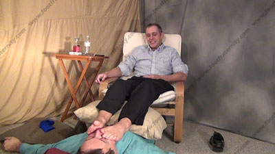 In slacks & dress shirt, sweaty blue sheer thick & thin dress socks as this hot straight blonde hair & blue eyed guy is sitting over his bitch for worship & sniffing the sweaty socks then his perfect shaped bare feet as he talks for real about this scene & why he wants to rule sissys and have them underfoot. He tells for real, what he wants to do to sissys and his plans for the future; His slave is totally embarrassed when while smelling & serving his hot sweaty socked feet then sweaty bare feet; Riley teases; mocks; gives response; then humiliates him while he dominates over his slave slave who must serve his feet; Riley is cocky, demanding and teases as he talks about to his straight brother about having sissys worship, smell & kiss his feet because he is superior; he teases & laughs at the sissy's humiliation while his flawless feet are worshipped; he gives orders, teases, laughs and commands & has realized how much power he feels at doing this and how much he likes it and how much we need it; three camera views (two different hot full view angles) & one close up. Socks sniffed, kissed; socked sniffed & kisses as he "parties and humiliates while teasing. He gets "high", blows smoke in the face & knows the power that he really has. He really does love this worship and control for real as his bitch sissy must obey his every word! Licking toe jam and bare feet; ashes in sissy's mouth; talks about w/s in the future & begging him for more, while being under foot as Riley know that his military straight feet do rule sissys!