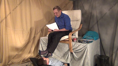 In dress slacks, dress shirt, lace up black shoes & sweaty sheer dress cap toe & heel socks, this hot straight jock is dominating his foot slave and responds to his erotic fan mail as he is sitting above his bitch sissy for worship & sniffing the sweaty socks, (socked feet only - but you see the bare feet thru the sheer socks) as he responds, knowing that he dominates & humiliates slave beneath his feet to be totally embarrassed when the slave is serving his feet: socked foot worship the whole time. He teases; receives gifts; mocks; gives orders; then humiliates him by allowing him to serve his feet; Riley is cocky, arrogant, very controlling and teases about knowing the sissy's need to be at his feet; talks about his control & having sissys kiss his feet because he is straight; responds to his fans; three camera views (two different hot full view angles) & one close up; he gives verbal abuse and being cocky, arrogant and demanding. He ashes in slave's mouth; actively uses his feet & toes to play with slaves face, nose & mouth, etc. He is so hot & cocky as he torments sissys in reality!