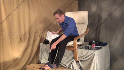 In dress slacks, dress shirt, lace up black shoes & sweaty sheer dress cap toe & heel socks, this hot straight jock is dominating his foot slave when his buddy John come into the scene and they laugh together at what he can to do a slave in the crate. The both respond to the domination & humiliation and King Riley reads John some of his fan mail as he is sitting above his bitch sissy, who is pinned in the crate with only face exposed for foot teasing, worship & sniffing the sweaty socks, (No bare feet) as they laugh, knowing that straight guys rules & humiliate slaves beneath feet to be totally embarrassed when the slave is serving his feet: socked foot worship during the whole time. He teases; tramples on slave's face; ashes in mouth; mocks; gives orders; then humiliates him by allowing him to serve his feet; Riley is cocky, arrogant, very controlling and teases about knowing the sissy's need to be at his feet; they talk & laugh about having sissys kiss feet because they are straight; three camera views (two different hot full view angles) & one close up; he gives verbal abuse; teases and being cocky, arrogant & demanding. He actively uses his feet & toes to play with slaves face, nose & mouth, etc. He is so hot & cocky as he torments sissys in reality and loves it!