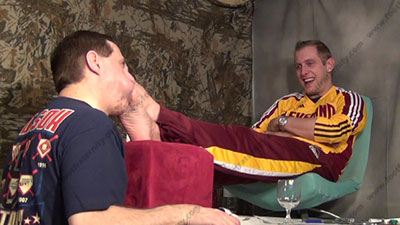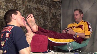 In work out pants, jersey, socks & perfect shaped bare feet, after a baseball practice and having the mud licked from his cleats, Riley relaxes sitting on the dinner table. This really hot jock has his slave sniff, kiss and worship his very sweaty socks then on to his perfect bare feet which are placed on a stand. Three fantastic views of this scene, two from a full view (one side, one from bottoms of feet) & another being a hot close up view. He mocks, teases & talks while in this incredible power position of his socked and bare feet serviced! He looks down at his sissy slave thru the scene while laughing for taking his humiliation & domination; This Air Force Stud always gets his way for being so hot and really loves to have foot slaves who need to worship his superior straight feet & socks; new shoes placed on his feet; Toe sucking, licking between toes, kissing; foot licking, shoves half of his foot in sissy's mouth; takes blackmail photos with his phone & then looks at sissy foot worship photos with comments & laughter. This is the real thing, people - he loves this.