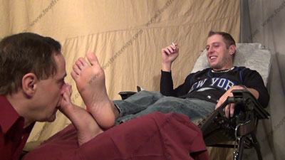 He is a Straight, macho, alpha male, stud who believes that fags should be his "male foot slaves" who bow to him and grovel at his feet. When we first met, I confessed to him that I have a "male foot fetish" for men's feet, and "I kiss feet." He laughed in my faggot face and said that now I can be his "cash slave", or "human ATM" and pay for the privilege of "worshiping my feet", because I am his "homo bitch"? I was humiliated and embarrassed to admit to him that I needed, not just wanted to "lick his feet", "suck his toes", "smell his sweaty socks" and "kiss his feet". He said that I was a "queer sock lover", and he plans to take advantage of letting me "serve straight guys" and "worship straight men". "You're gonna pay, pay and pay more". just because he has "perfect male feet" and I am a "toe jam" eater who knows that "straight guys rule" "Yes, Foot Master, Sir, You are a stud who knows how to give humiliation and domination" to a "faggit foot slave". He knew instinctively that I would beg to "lick between his toes", have him "walk all over me", "trample me", and "shove his foot in my face". I was a pussy fag who had to have this treatment from a heterosexual man who would love the power trip and use me to "lick his feet", "suck his toes", "kiss feet" and "take a whiff of his sweaty socks" because I have a "gay foot fetish". This was the beginning of how I got Master ______ to be a male model for the Foot Fraternity. He knew that I was a foot lover and needed "his feet in my face". It started with simple photos of his "male bare feet" and quickly became a situation where I was his "foot slave" on a regular basis and had to promote him on the web site to have the visitors buy his "male foot fetish film", and "foot fetish videos" just because they also desired to "kiss his sweaty foot", "lick his foot sweat" and be "his foot slave". He got paid for every visit with me as he would start off by saying, "You are my bitch", so no more "free foot photos". It's time that you realized who's your daddy and that you will pay to be my "toe sucker" and "foot slave for life". I knew that I wanted to be "his footslave", but didn't know that it would cost me so much. He forced me to make a choice between staying with my lover or his feet! I can't believe that he forced me to do that. I was seduced by the "arch of his foot" on this "sexy guy", and needed to be his "foot mat" and foot stool. I had to pay to that honor! I chose his feet and ended my relationship. He asked if I need to "smell feet", "kiss foot" and "lick boot" as he laughed in my face. "Yes Sir", "I worship Straight men". I have a strong "male foot fetish" and I run an international organization for guys with a "shoe fetish" and want to be a "trample slave" or "toe sucker" to guys feet." His eyes opened wider and he asked if it meant that there are thousands of footslaves and "foot lickers" who want to take a "whiff of my feet"? Is this a "gay man foot fetish club" or something? I told him the truth and he has OWNED me ever since that confession. I have had to pay for his vacations, buy him a truck, and pay for every visit he made when I have to "worship him", "smell his socks", "kiss his toes", caress his feet and beg him to "walk on me" with "his perfect feet". To this day, he still loves this power that he has over me and other foot fags who have this intense need to "smell the foot sweat" of "his sweaty feet". Yes, we have a "gay foot fetish" and need this jock to order us to "Smell my feet" or "Sniff my socks" and now we have to pay the price for his "male foot fetish movies". He loves the control that he has by "wiggling his sweaty toes in my face", knowing that I and a "toe sucker" and will obey his orders. He was amused when I first asked to "eat his toe jam" and beg him to clip his toe nails in my mouth for me to swallow. Now he charges for this and makes fags all over the world pay for this gift from him! I asked about doing "male foot fetish video" and he loved the idea of being paid for this while he just sat back and relaxed with a beer while watching a football game or some hot straight films while "I am his footstool" or footmat. He would even have his straight brother come over and the two would play video games while I had to "smell their feet", worship him and pay them for "kissing the guys feet"! His brother also became a Foot Frat model (that is a clue for you to guess who this model is). Now he just walks in and I have to "kiss his boots" every time he enters or leaves my house. He knows that we all need to hear him command us to "Sniff my socks" or "Smell my feet" because we are his "gay foot slave". He knows that he can make the best "male foot fetish video" and collect big time when he laughs at us underfoot while saying, "He has a foot fetish" and "he needs my straight feet". This is all real, because I am his foot slave, and because we need to "make love to his feet", he can have anything he wants. His feet are very sweaty and smelly and this makes his laugh more when we have to "lick between his toes" and "eat his toe jam". This Adonis loves to "shove his feet in my face" while laughing at my humiliation because we "adore his feet". He can just "wiggle his toes" in our face and bark out an order, knowing that it will be done. It has cost a great deal to keep this Male Master as a Frat model Can you guess which model has just been described? Send in your comments or your guess to: Dug Gaines and if you are right, win a free hot story book of scenes of this "male foot fetish!"