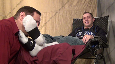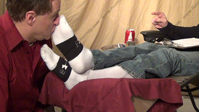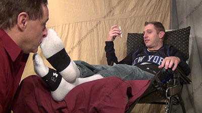 In jeans, sneakers & white Under Armor sports socks, this hot straight stud is sitting back in his lounge chair, continuing his talk with Dr. Phil all about taking control of his "boss" and making him into his slave with his feet in his slave's face as he tells of his feelings & the slave who is serving his feet; he tells his power & control over sissys who worship his feet; foot teasing, licking, sucking. Riley laughs and just watches the slave serve his socked & bare feet while he mocks him and just tells Dr. Phil of the total foot worship; he teases; mocks; he makes comments about the humiliation; verbal abuse; and humiliates him in many ways while Riley uses his sweaty bare toes to play with slave's face, nose & mouth; He is arrogant & an extremely macho, cocky and arrogant jock; three camera views (one close up) & two other very hot angles; He teases, mocks & takes foot control over his bitch with total humiliation at his very macho socked & bare feet, while knowing he rules with complete foot control over sissys and now shows the world on TV.