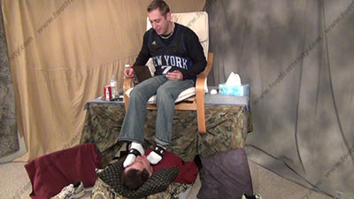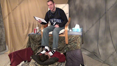 In jeans, sneakers & white Under Armor sports socks, this hot straight jock is sitting on over sissy sissy who is beneath his feet as he teases & torments him under his straight feet while reading a letter that gets him turned on! Riley laughs and just watches the slave serve his feet while he mocks him and just talks his hot fantasies; he teases; mocks; he makes comments about the humiliation; verbal teasing; and humiliates him in many ways while Riley uses his sweaty socked toes to play with slave's face, nose & mouth; (no bare foot) He is arrogant & an extremely macho, cocky and arrogant jock; three camera views (one close up) & two other very hot angles; He teases, mocks & takes foot control over his bitch with total humiliation at his very macho socked feet, while knowing he rules with complete foot control over sissys & the slut slaves who also worship him.