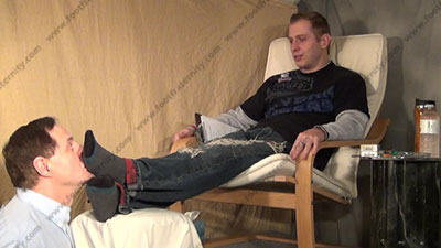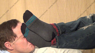 In jeans, black loafers & dark grey dress socks with black cap toes, this hot straight stud is sitting with his feet in his slave's face as he forces him to drink his dirty foot sweaty water that washed his feet. He goes into the power mode for real as this hot straight stud is sitting above his slave who is on the floor kneeling his feet as he tells his power & control over sissys who worship his feet; foot teasing, licking, sucking & worship; Riley laughs and just watches the slave serve his feet while he mocks him and just talks hot verbal humiliation for real! He teases; he makes comments about the domination; verbal teasing; and humiliates in many ways while Riley uses his sweaty bare toes to play with slave's face, nose & mouth; He is arrogant & an extremely macho, cocky and arrogant jock; three camera views (one close up) & two other very hot angles; He teases, mocks & takes foot control over his bitch with total humiliation at his very macho feet, while knowing he rules with his straight fantasies. Total humiliation of his heterosexuality and power over foot slaves.