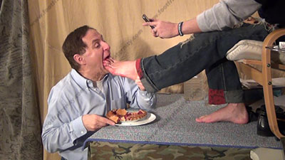 In jeans, black loafers & bare feet, this hot straight stud goes into the power mode for real as he is sitting above his slave who is on the floor kneeling his feet as he tells his power & control over sissys who worship his feet; foot teasing, licking, sucking & worship; Riley laughs and just watches the slave serve his feet while he mocks him and knows how this turns us on for real! He teases; he makes comments about the domination; verbal teasing; and humiliates in many ways while Riley uses his sweaty bare toes to play with slave's face, nose & mouth; He is arrogant & an extremely macho, cocky and arrogant jock; He discovers "cuckold" situations and wants it to happen with us at his feet! Three camera views (one close up) & two other very hot angles; He teases, mocks & takes foot control over his bitch with total humiliation at his very macho feet, while knowing he rules with his straight fantasies. We have found the ultimate, straight foot master of all time who wants this for eternity! He steps in a cherry pie at the end, forcing his sissy to eat it from his sweaty toes and macho bare feet.