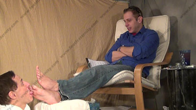 In jeans & black tassel loafers, sweaty sheer cap toe black socks as this hot straight guy is sitting above his kneeling bitch for worship & sniffing the sweaty socks then his perfect shaped bare feet; His slave is totally embarrassed when while kneeling at and smelling & serving his hot sweaty socked feet then perfectly shaped sweaty bare feet; Riley teases; mocks; gives orders; then humiliates him by dominating over slave slaves who must serve his feet, then propose with a silver chain to marry his macho feet; Riley is cocky, demanding and teases as he talks about his straight life in the Air Force & having sissys worship, smell & kiss his feet because of this; he tells all while his stud feet are worshipped; he gives orders and commands; three camera views (two different hot full view angles - one from the soles of his feet) & one close up. Socks sniffed, kissed; bare feet sniffed & kissed as he smokes his bong and humiliates while teasing. He gets "high" and sucks in the power. He really does love this worship and control for real as his bitch sissy must obey his every word! Licking toe jam and bare feet; begging him for more!