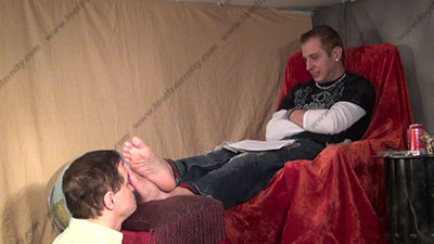In jeans & sweaty designer crew socks as this hot straight guy is sitting above his kneeling bitch for worship & sniffing the sweaty socks then his perfect shaped bare feet; His slave is totally embarrassed when while kneeling at and smelling & serving his hot sweaty socked feet then perfectly shaped sweaty bare feet; King Riley teases; mocks; gives orders; then humiliates him by dominating over slave slaves who must serve his feet, Has a leash and collar on his slave dog as his strong, Alpha hand pulls the face into his feet; Riley is cocky, demanding and teases as he talks about his straight life with cuckolding other married guys & having them worship, smell & kiss his feet because of this; he tells all while his stud feet are worshipped; he gives orders and commands; three camera views (two different hot full view angles - one from the soles of his feet) & one close up. Socks sniffed, kissed; socked sniffed & kissed as he humiliates while teasing. The leash is tight, and he doesn't let go! He really does love this worship and control for real as his bitch sissy must obey his every word as he reads the confessions of a foot licker! Licking toe jam and bare feet; begging him to serve his Macho feet!