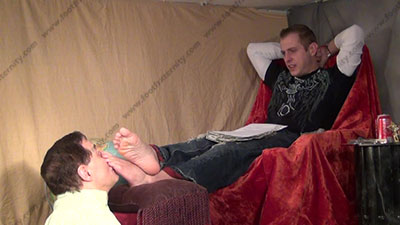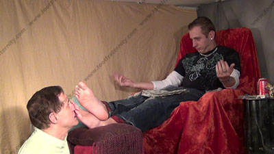 In jeans & sweaty designer crew socks as this hot straight guy is sitting above his kneeling bitch for worship & sniffing the sweaty socks then his perfect shaped bare feet; His slave is totally embarrassed when while kneeling at and smelling & serving his hot sweaty socked feet then perfectly shaped sweaty bare feet; King Riley teases; mocks; gives orders; then humiliates him by dominating over slave slaves who must serve his feet; makes sissy eat toe nail clippings; drink dirty foot water; Riley is cocky, demanding and teases as he talks about his straight life with cuckolding other married guys & having them worship, smell & kiss his feet because of this; he tells all while his stud feet are worshipped; he gives orders and commands; three camera views (two different hot full view angles - one from the soles of his feet) & one close up. Socks sniffed, kissed; socked sniffed & kissed as he humiliates while teasing. This is becoming so blasted REAL! He really does love this worship and control for real as his bitch sissy must obey his every word as he reads the confessions of a foot licker! Licking toe jam and bare feet; begging him to serve his JOCK feet!