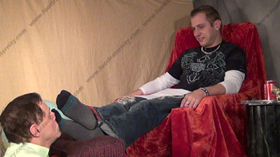 In jeans & sweaty bare feet as this hot straight guy is sitting above his kneeling bitch for worship & sniffing, licking, kissing, eating toe jam of his perfect shaped bare feet; His slave is totally embarrassed when while kneeling at and smelling & serving his hot sweaty perfectly shaped bare feet while they are on a King's pillow; Riley teases; mocks; gives orders; then humiliates him by dominating over slave slaves who must serve his feet, Some sweaty socked foot action as he talks about his straight life with sissys confessions to his feet; having them worship, smell & kiss his feet because of this; he tells his rules while his stud feet are worshipped; he gives orders, mocks, teases and commands; three camera views (two different hot full view angles - one from the soles of his feet) & one close up. Socks sniffed, kissed; socked sniffed & kisses as he humiliates while teasing. He really does love this worship and control for real as his bitch sissy must obey his every word! Licking toe jam and bare feet; begging him to serve his Macho feet & sweaty socks!