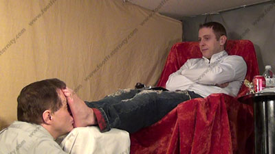 In jeans, loafers & thin black sheer cap toe nylon sweaty socks, this hot straight stud is on easy chair above with slave kneeling on the floor, at his feet while Riley hypnotizes him into full submission. Sissy serves at his feet to worship & sniff the sweaty socks, then the sweaty bare feet; Riley laughs, knowing that he rules & humiliates slave at his feet ready to be totally embarrassed when the slave is under the spell of his feet: sock and bare foot worship; teases; mocks; gives orders; then humiliates him by allowing him to serve his feet; Riley is cocky, arrogant and knows & uses the sissy's need to be at his feet; slave; three camera views (one close up) & two hot full length angles. Socks sniffed, kissed; bare feet licked, toes sucked because he is cocky, arrogant and command the worship from his hypnotized foot sissy.