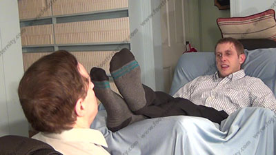 In dress slacks, lace up dress shoes & sweaty designer grey socks with black toes as this hot straight stud talks for real about this scene. He doesn't need a script because this is all very real to him. Riley laying back on the Lazy boy with his slave at his feet for worship & sniffing the sweaty socks then his sweaty bare feet as he talks about his reality; His slave is totally embarrassed when at the feet and smelling & serving his hot sweaty socked & bare feet; Master Riley teases; mocks; gives orders; then humiliates him by dominating over slave slaves who must serve his feet; Riley is cocky, demanding and teases as he talks about his straight life; he gives orders and commands; three camera views (two different hot full view angles - one from the soles of his feet) & one close up. Socks sniffed, feet licked, sucked & more as he humiliates while teasing. He really does love this power & worship for real as his bitch slaves will obey his every word!
