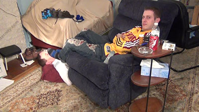 With the slave in a tuxedo, and Riley in jeans, blue sweaty sheer think and thin socks, the questions happen while his toes & feet play with slave's face and he forces his foot slave to accept the marriage by while making love to the feet of Master Riley! Too much of a fantasy to put into words - you just gotta see it! Much teasing, foot action (both socked and bare foot & the works.) Three sensational camera angles & views of this scene. Then he sits back to respond with his feelings of this unusual event that a straight guy would NEVER think would happen, while using his new foot spouse to pamper his feet. This scene is HUGE and takes four films to cover the entire sensational event. Riley is so amused at this wedding to his feet & has a overdose of a power trip with it.