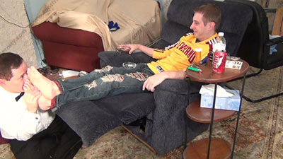 Now that the ceremony is over, the slave is licking the bare feet for hours while Master Riley watches TV. Then the newlywed spouse must be his footstool, and then massage his feet and hands. Ending with a very CLOSE UP view of the Wedding service from a different camera which shows VERY CLOSE of every foot movement of this God's feet during the ceremony. Many angles with total pampering of this Straight Master.