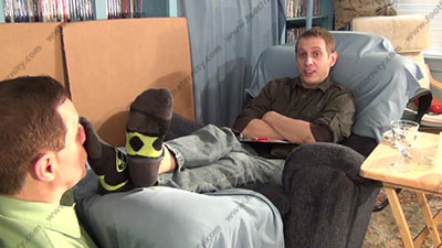 In jeans, sweaty low cut designer gym socks as this hot straight stud talks about slaves rules for serving at his feet. He looks at an new site of him as a NEW YORK Master Riley! He loves this idea of this being real. Riley is laying back on the Lazy boy with his slave at his feet for worship & sniffing the sweaty socks then his macho bare feet as he talks about his power; This is all so real because he loves it; His slave is totally embarrassed when while serving his hot sweaty socked & bare feet; Master Riley teases; mocks; gives orders; clips toe nails for sissy to eat; then humiliates him by dominating slave slaves who must serve his feet; Riley is cocky, demanding and teases as he talks about his straight life while the sissy worships, smells & kisses his feet; he teases; he gives orders and commands; He makes slave admit that he needs this. Three camera views (two different hot full view angles - one from the soles of his feet) & one close up. Socks sniffed, feet licked, sucked & more as he humiliates while teasing. He loves this power & worship more and more as his bitch slaves must obey his every command. He laughs at the weakness of foot slaves. No question, he is a winner!