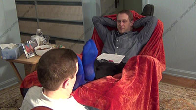In dress shirt and pants, sweaty blue sheer thick and thin socks as this hot straight stud teases his foot slave as he watches & laughs while his slave is serving at his socked then bare feet. He likes to tease with his sweaty feet & bare feet and hold them in the slave's face and tease him while his slave is serving at his feet. He likes to tease with his sweaty socked then bare feet and hold them in the slave's face and laugh at him while he is giving commands, orders & taking power from foot slaves! He loves this idea to make our place under a straight guy's feet as he relaxes. His slave is totally embarrassed when while serving his Riley's sweaty bare feet & being treated like crap then has to give him gifts for the privilege; the sissy worships, smells & kisses, sniffs & worship his feet; Riley teases or gives orders and commands; Three camera views (two different hot full view angles - one from the soles of his feet) & one close up. He loves this power & worship more and more as his bitch slaves must obey his every command & accept the power Riley has over him. He laughs at the weakness of foot slaves. He flexes his feet all the time and toys with his slave's face using them when the socks are well worn and the bare feet are sweaty.