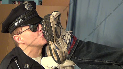 In jeans, sneakers, sweaty blue work out short socks with white cap toes & heels, Jock Riley blackmails the cop, forcing him to serve his socked feet; He has cop locked in the sissy trap, with his face forced at his feet. Riley totally embarrasses & humiliates in many ways; slave becomes Riley's bitch; sweaty sock worship; spit; ashes; teases; mocks; gives orders & talks about the power; then takes slave's dignity as this Golden Blonde Military Stud humiliates & controls; with total blackmail & humiliation with much teasing & laughter at the situation; three camera views (one close up) & two other very sensual full angles - one from the bottoms of his Straight feet.