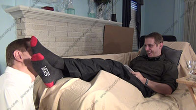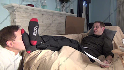 In slacks, dress shirt, and the charcoal black Vans dress socks with red cap toe and heel that are on his straight feet, this hot straight stud teases his slave for serving at his feet. He likes to tease with his feet and hold them in the slave's face as he lays on the sofa with the sissy kneeling at his feet. He finds a letter that his slave wrote to a frat member about how much Riley has become his Master. He reads it out loud and humiliates his bitch. He gives orders & commands for worship and service to his socked feet. He talks about all that is revealed in the embarrassing letter; He looks intently into the eyes of his slave to watch every moment of his humiliation and show his power and amusement; Riley spits; His slave is totally embarrassed when while serving his hot sweaty socked feet; Master Riley teases; mocks. Riley is cocky, demanding and teases as he talks about his control and power while his sissy worships, smells & kisses, smell his socked feet; he teases; he gives orders and commands; He makes slave admit that he needs this. Three camera views (two different hot full view angles - one from the soles of his feet) & one close up. Socks sniffed; toes whiffed & more as he humiliates while teasing. He loves this power & worship more and more as his bitch slaves must obey his every command & accept the power Riley has over him.