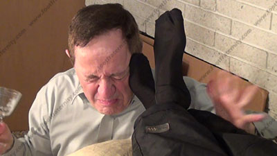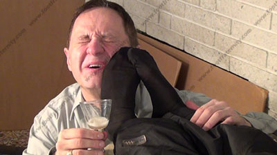 Scenes from close ups from many past films of just the perfect shaped feet of King Riley & slave kneeling at his feet ready to be totally embarrassed & humiliated as he dominates; many scenes from a new camera angle while slave is sniffing the black nylon socked feet; worshiping them being totally humiliated; one full camera view of 2 hours of his feet. Two hours of socked foot action as Riley's straight feet are adored.