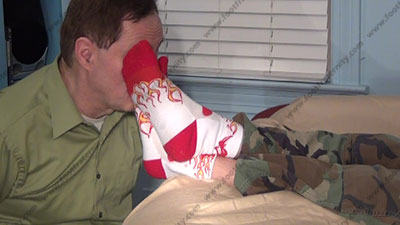 Only the close ups from films of just the perfect shaped socked feet of King Riley & slave kneeling at his feet ready to be totally embarrassed & humiliated as he dominates as described in those films; a new camera angle while slave serving the feet; one full camera view of 2 hours of his feet. Hot erotic foot adoration in many different kinds of socked feet from various films as Riley's straight socked feet are worshiped and slave is humiliated made into the total sock slave.
