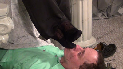 Scenes from close ups from many past films of just the perfect feet of God Roberto & slave kneeling at his feet ready to be totally embarrassed & humiliated as he dominates; many scenes from a new camera angle while slave is sniffing the sheer socked feet; worshiping them being totally humiliated; one full camera view of 2 hours of his feet. Two hours of socked foot action as Roberto’s straight feet are adored.