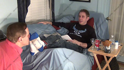 In jeans, White/blue air force gym socks, Riley is lying on the sofa with his feet up in his feet in sissy’s face which are be totally worshiped and served and praised for being straight. He mocks his slave while he is kissing the feet, adoring socked toes, smelling them, worshiping the straight stud's socked feet; then bare foot action. He knows how to command total socked foot and bare foot worship and demonstrates this here with “sissy candy” and commands; three camera views (one close up) & two other very sensual angles. Hot erotic foot action during this time as Riley's straight feet are served. His Powerful teasing ways of taunting foot sissys is amazing. He loves having a slave trapped and pinned at his feet as he demands our adoration to his feet & socks.