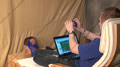 In loafers, sweaty royal blue sheer socks, Riley is sitting over his slave who is locked in the box with his feet shoved in the face, to be totally embarrassed & humiliated as he dominates, teases and mocks about his foot worship sessions and how to humiliate foot slaves. Then sissy has to kiss and sniff the dirty socked feet & toes, smelling them; worshiping the straight stud's socked feet as he talks; mocks; plays on his lap top computer & commands his slave who is pinned at the straight feet; three camera views (one close up) & two other very sensual angles. Hot erotic sock and bare foot action during this film as Riley's straight feet are served. His controlling ways of teasing foot sissys humiliates them and Riley wants it, and sissys need it.