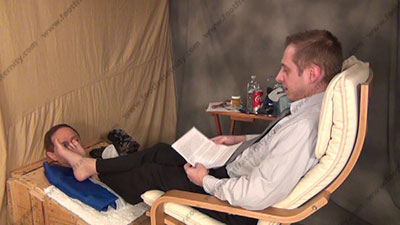 In loafers, sweaty designer camo socks, Riley is sitting over his slave who is locked in the box with his feet shoved in the face, to be totally embarrassed & humiliated as he dominates, teases and mocks about his foot worship and how to humiliate foot slaves. Then sissy has to kiss and sniff the dirty socked feet & toes, smelling them; worshiping the straight stud's socked feet as he reads a letter from a French slave who sent a French flag for him to wipe his feet as he dominates them. He mocks; reads puts them in their place since Riley was in the military and the French are not his favorite people. He commands his slave who is pinned at the straight feet to do foot worship; three camera views (one close up) & two other very sensual angles. Hot erotic sock and bare foot action during this film as Riley's straight feet are served. His controlling ways of teasing foot sissys humiliates them and Riley wants it, and sissys all over need it.