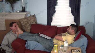 In white designer gym socks, and bare foot, we have a different full camera view of three different scenes in order from the same day, from the list of Roberto films of him being worshiped. For those who like to see the same view but 2 hours of different action, this is for you. His feet are sensational! They totally control and rule. All different scenes on this film, no repeat from another angle. Two hours of hot and erotic Roberto socked and bare feet as they are worshiped.